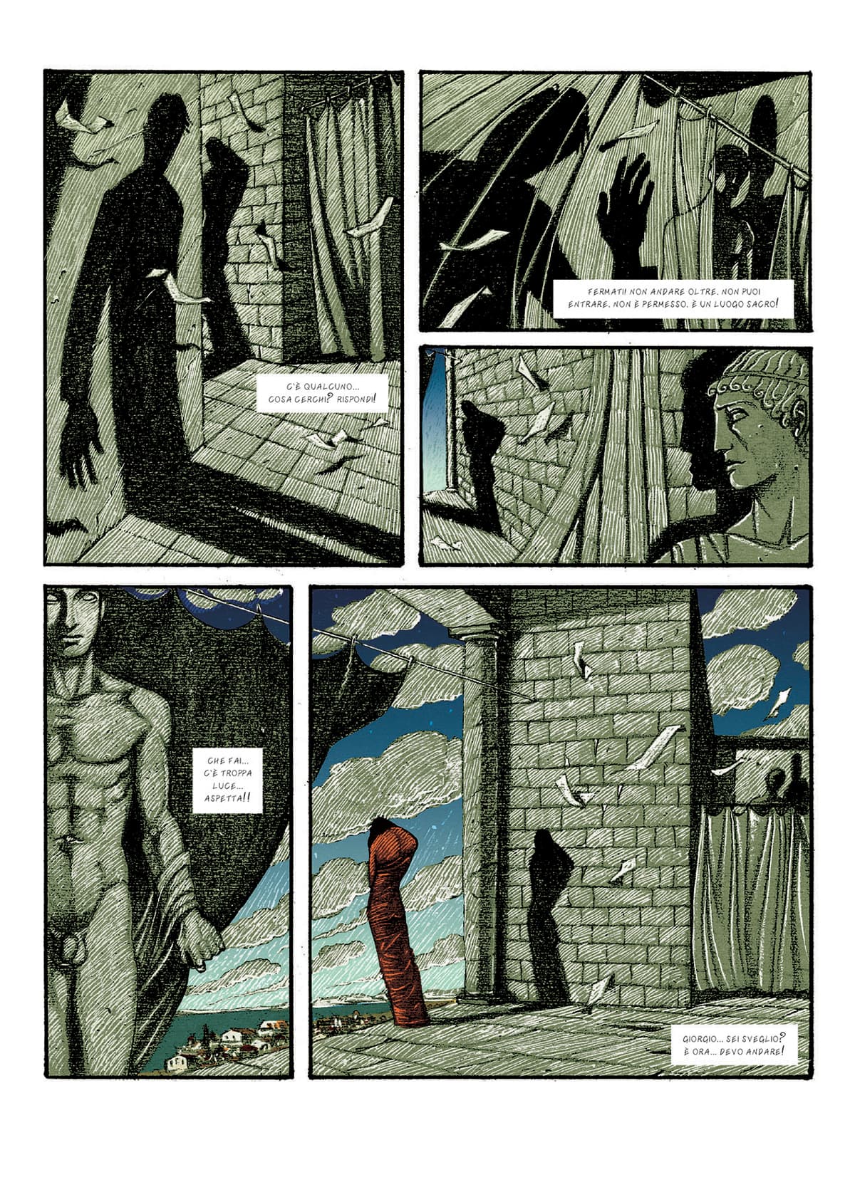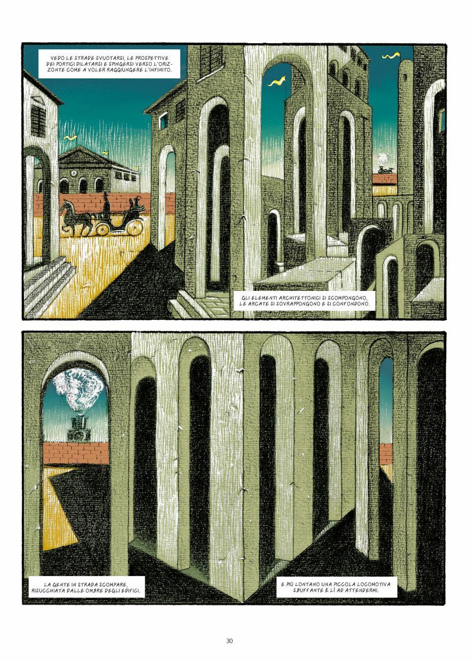 Questa è una storia avvoltolata dal mistero, dalle ombre per la troppa luce e dai problemi intestinali. Eh sì, questo mi avvicina molto (anche io ho un po’ di De Chirico dentro di me… nel crasso, precisamente).