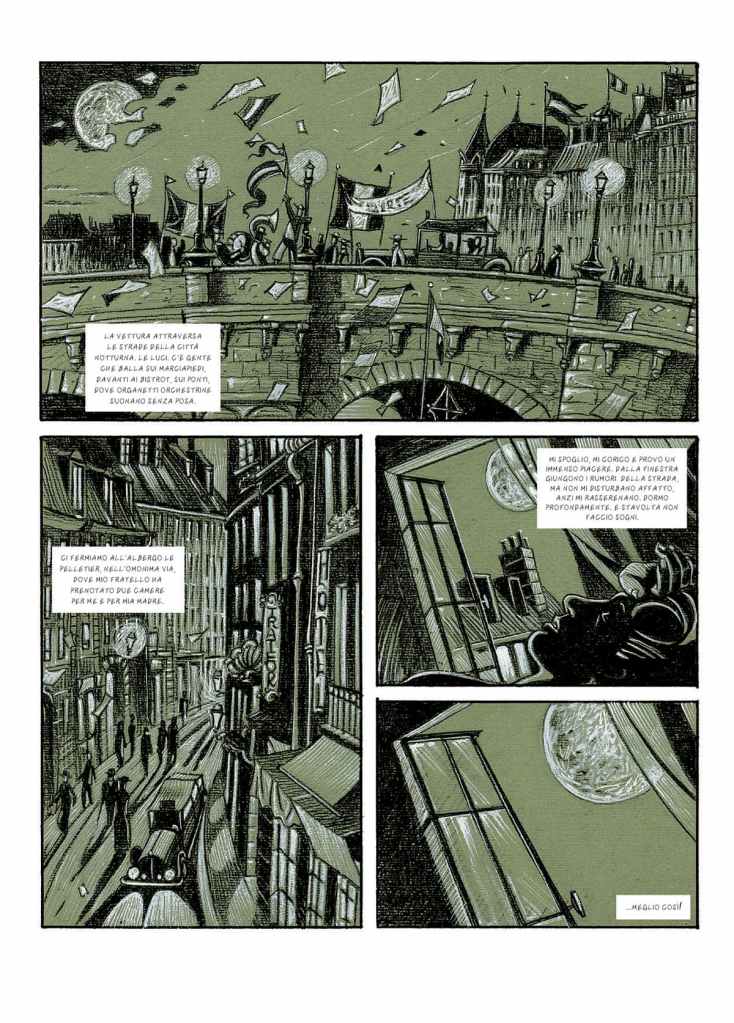 Non ho molte letture della Oblomov sui miei scaffali e – per quanto debba sempre superare un pregiudizio di altezzosità verso questa casa editrice – per ora non mi ha deluso. Se pur non molto originale la trovata di mettere il colore solo sui quadri – o dentro i quadri – rappresentati di vignetta in vignetta, e lasciare un insipido grigio malinconico che veicola l’umore del protagonista, rimane comunque una scelta sensata ed evocativa.